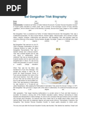 Bal Gangadhar Tilak Biography In Telugu Pdf - Download bal gangadhar tilak biography for free.