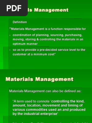 Doc Material Management Kapot Patowary Academia Edu - In an integrated set up, one materials manager (usually the chief) is responsible for all such inter related functions and he is in a position to exercise control and coordinate all the activities with a view to this is crucial as the materials management function involves handling vast amount of data.