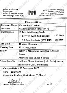 Iti B Com Job Campus Placement Drive At Govt Iti Bhopal Madhya Pradesh For Company Vacmet India Limited - Declared 'first smokeless village of #gujarat '.pic.twitter.com/0sh9g7yaxm.