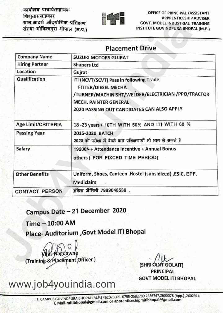 Iti Job Campus Suzuki Motors - Der einfachste weg nach govindpura ist das einsteigen in einen der privaten busse, die in bhopal fahren.